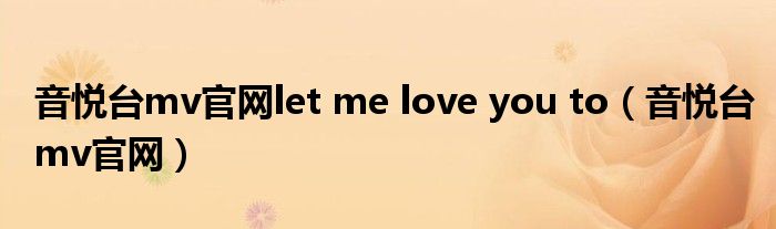 音悦台mv官网letmeloveyouto(音悦台mv官网)