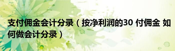 支付佣金会计分录(按净利润的30付佣金如何做会计分录)