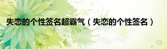 关于失恋的个性签名超霸气,失恋的个性签名这个很多人还不知道,今天菲菲来为大家解答以上的问题,现在让我们一起来看看吧!