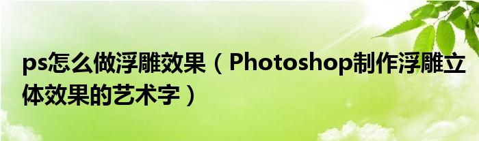 关于ps怎么做浮雕效果,Photoshop制作浮雕立体效果的艺术字这个很多人还不知道,今天菲菲来为大家解答以上的问题,现在让我们一起来看看吧!