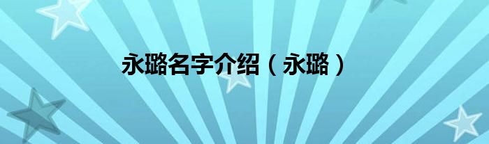 永璐名字介绍(永璐)