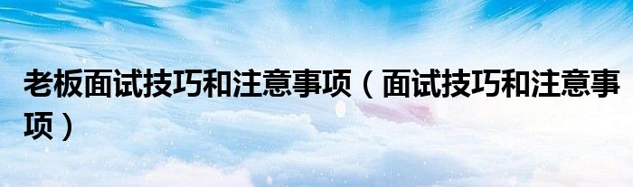 关于老板面试技巧和注意事项,面试技巧和注意事项这个很多人还不知道,今天菲菲来为大家解答以上的问题,现在让我们一起来看看吧!