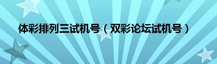 关于体彩排列三试机号,双彩论坛试机号这个很多人还不知道,今天菲菲来为大家解答以上的问题,现在让我们一起来看看吧!