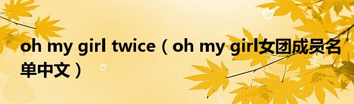 关于oh my girl twice,oh my girl女团成员名单中文这个很多人还不知道,今天菲菲来为大家解答以上的问题,现在让我们一起来看看吧!