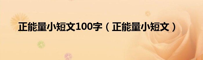关于正能量小短文100字,正能量小短文这个很多人还不知道,今天菲菲来为大家解答以上的问题,现在让我们一起来看看吧!