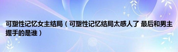 关于可塑性记忆女主结局,可塑性记忆结局太感人了 最后和男主握手的是谁这个很多人还不知道,今天菲菲来为大家解答以上的问题,现在让我们一起来看看吧!