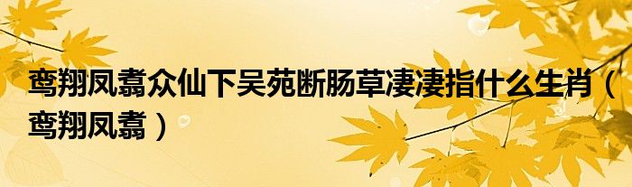 关于鸾翔凤翥众仙下吴苑断肠草凄凄指什么生肖,鸾翔凤翥这个很多人还不知道,今天菲菲来为大家解答以上的问题,现在让我们一起来看看吧!
