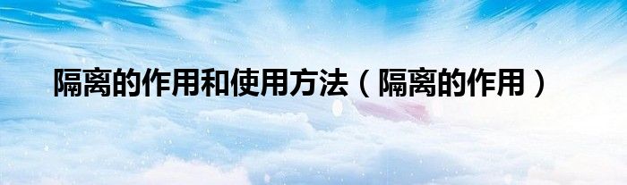 关于隔离的作用和使用方法,隔离的作用这个很多人还不知道,今天菲菲来为大家解答以上的问题,现在让我们一起来看看吧!