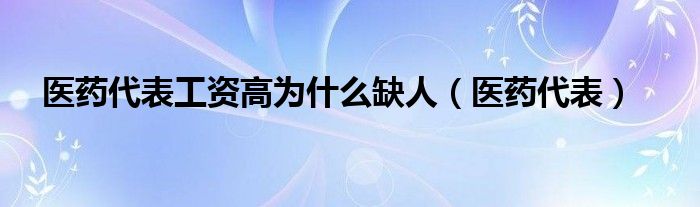 关于医药代表工资高为什么缺人,医药代表这个很多人还不知道,今天菲菲来为大家解答以上的问题,现在让我们一起来看看吧!