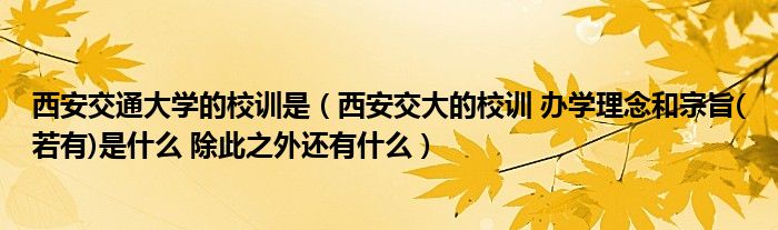 关于西安交通大学的校训是,西安交大的校训 办学理念和宗旨(若有)是什么 除此之外还有什么这个很多人还不知道,今天菲菲来为大家解答以上的问题,现在让我们一起来看看吧!