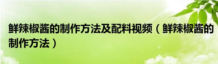 关于鲜辣椒酱的制作方法及配料视频,鲜辣椒酱的制作方法这个很多人还不知道,今天菲菲来为大家解答以上的问题,现在让我们一起来看看吧!