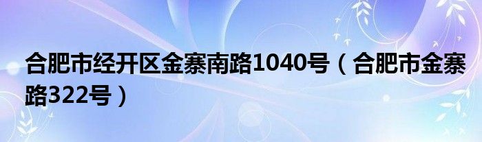 关于合肥市经开区金寨南路1040号,合肥市金寨路322号这个很多人还不知道,今天菲菲来为大家解答以上的问题,现在让我们一起来看看吧!
