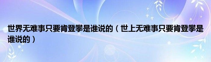关于世界无难事只要肯登攀是谁说的,世上无难事只要肯登攀是谁说的这个很多人还不知道,今天菲菲来为大家解答以上的问题,现在让我们一起来看看吧!