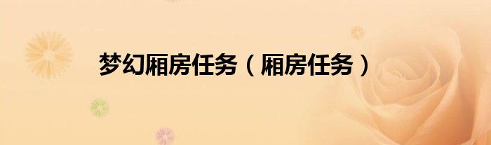 关于梦幻厢房任务,厢房任务这个很多人还不知道,今天菲菲来为大家解答以上的问题,现在让我们一起来看看吧!