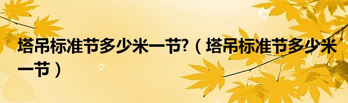 关于塔吊标准节多少米一节?,塔吊标准节多少米一节这个很多人还不知道,今天菲菲来为大家解答以上的问题,现在让我们一起来看看吧!