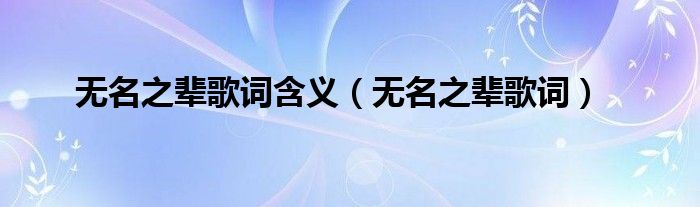 无名之辈歌词含义(无名之辈歌词)