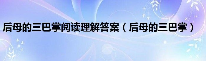 关于后母的三巴掌阅读理解答案,后母的三巴掌这个很多人还不知道,今天菲菲来为大家解答以上的问题,现在让我们一起来看看吧!