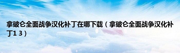 拿破仑全面战争汉化补丁在哪下载(拿破仑全面战争汉化补丁1 3)