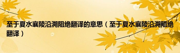 至于夏水襄陵沿溯阻绝翻译的意思(至于夏水襄陵沿溯阻绝翻译)