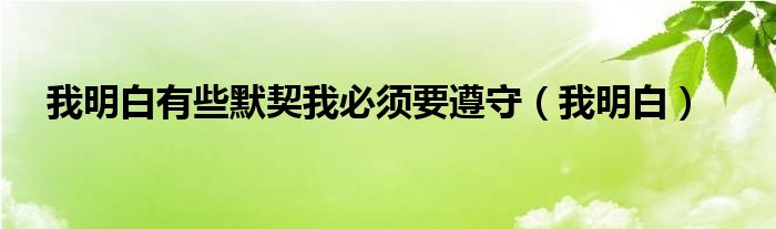 关于我明白有些默契我必须要遵守,我明白这个很多人还不知道,今天菲菲来为大家解答以上的问题,现在让我们一起来看看吧!