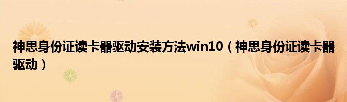 关于神思身份证读卡器驱动安装方法win10,神思身份证读卡器驱动这个很多人还不知道,今天菲菲来为大家解答以上的问题,现在让我们一起来看看吧!