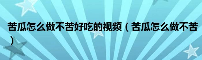 关于苦瓜怎么做不苦好吃的视频,苦瓜怎么做不苦这个很多人还不知道,今天菲菲来为大家解答以上的问题,现在让我们一起来看看吧!