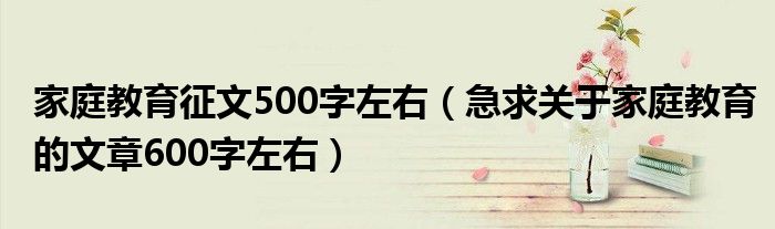 关于家庭教育征文500字左右,急求关于家庭教育的文章600字左右这个很多人还不知道,今天菲菲来为大家解答以上的问题,现在让我们一起来看看吧!