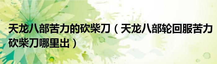 关于天龙八部苦力的砍柴刀,天龙八部轮回服苦力砍柴刀哪里出这个很多人还不知道,今天菲菲来为大家解答以上的问题,现在让我们一起来看看吧!