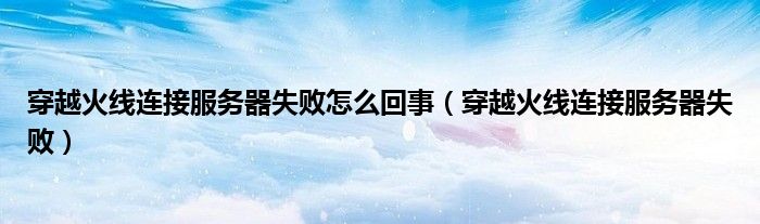 穿越火线连接服务器失败怎么回事(穿越火线连接服务器失败)