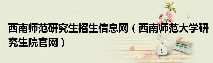 关于西南师范研究生招生信息网,西南师范大学研究生院官网这个很多人还不知道,今天菲菲来为大家解答以上的问题,现在让我们一起来看看吧!