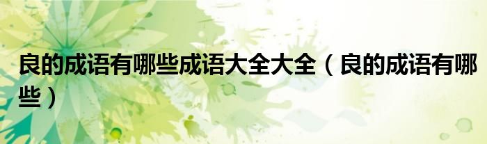 良的成语有哪些成语大全大全(良的成语有哪些)