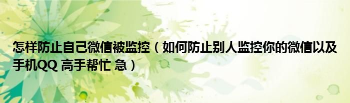 怎样防止自己微信被监控(如何防止别人监控你的微信以及手机QQ 高手帮忙 急)