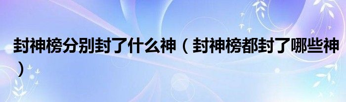 关于封神榜分别封了什么神,封神榜都封了哪些神这个很多人还不知道,今天菲菲来为大家解答以上的问题,现在让我们一起来看看吧!