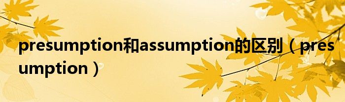 关于presumption和assumption的区别,presumption这个很多人还不知道,今天菲菲来为大家解答以上的问题,现在让我们一起来看看吧!