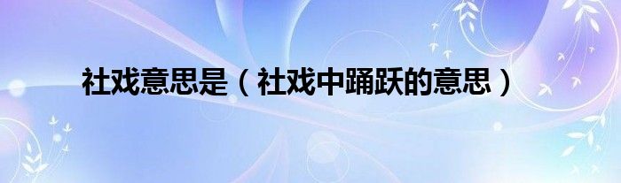 关于社戏意思是,社戏中踊跃的意思这个很多人还不知道,今天菲菲来为大家解答以上的问题,现在让我们一起来看看吧!