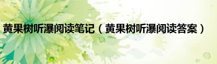 关于黄果树听瀑阅读笔记,黄果树听瀑阅读答案这个很多人还不知道,今天菲菲来为大家解答以上的问题,现在让我们一起来看看吧!