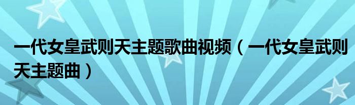 关于一代女皇武则天主题歌曲视频,一代女皇武则天主题曲这个很多人还不知道,今天菲菲来为大家解答以上的问题,现在让我们一起来看看吧!