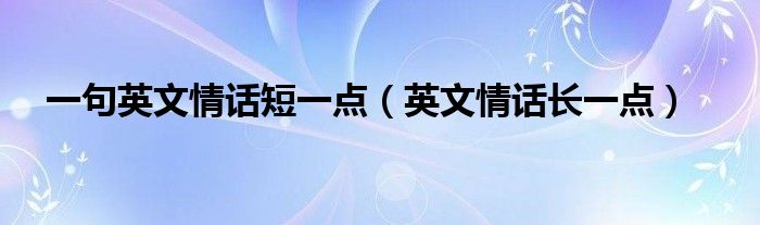 关于一句英文情话短一点,英文情话长一点这个很多人还不知道,今天菲菲来为大家解答以上的问题,现在让我们一起来看看吧!