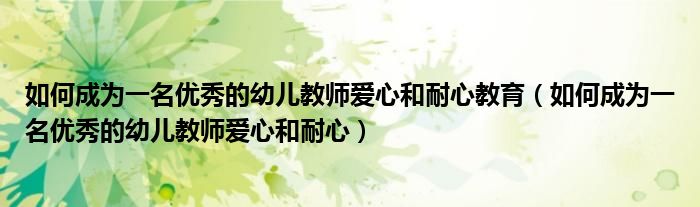 关于如何成为一名优秀的幼儿教师爱心和耐心教育,如何成为一名优秀的幼儿教师爱心和耐心这个很多人还不知道,今天菲菲来为大家解答以上的问题,现在让我们一起来看看吧!