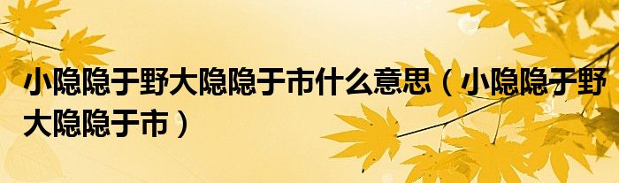 关于小隐隐于野大隐隐于市什么意思,小隐隐于野大隐隐于市这个很多人还不知道,今天菲菲来为大家解答以上的问题,现在让我们一起来看看吧!