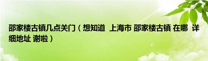 关于邵家楼古镇几点关门,想知道 上海市 邵家楼古镇 在哪 详细地址 谢啦这个很多人还不知道,今天菲菲来为大家解答以上的问题,现在让我们一起来看看吧!