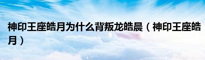 关于神印王座皓月为什么背叛龙皓晨,神印王座皓月这个很多人还不知道,今天菲菲来为大家解答以上的问题,现在让我们一起来看看吧!