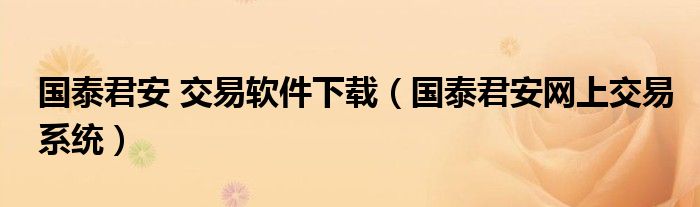 国泰君安 交易软件下载(国泰君安网上交易系统)
