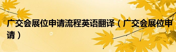 关于广交会展位申请流程英语翻译,广交会展位申请这个很多人还不知道,今天菲菲来为大家解答以上的问题,现在让我们一起来看看吧!