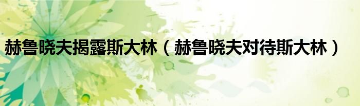 关于赫鲁晓夫揭露斯大林,赫鲁晓夫对待斯大林这个很多人还不知道,今天菲菲来为大家解答以上的问题,现在让我们一起来看看吧!