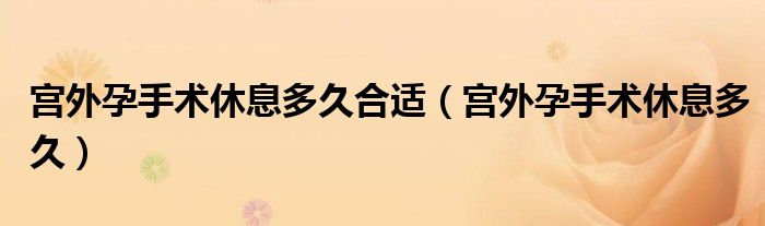 关于宫外孕手术休息多久合适,宫外孕手术休息多久这个很多人还不知道,今天菲菲来为大家解答以上的问题,现在让我们一起来看看吧!