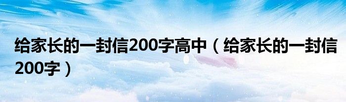 关于给家长的一封信200字高中,给家长的一封信200字这个很多人还不知道,今天菲菲来为大家解答以上的问题,现在让我们一起来看看吧!