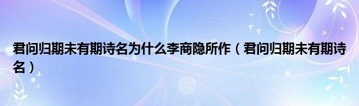 关于君问归期未有期诗名为什么李商隐所作,君问归期未有期诗名这个很多人还不知道,今天菲菲来为大家解答以上的问题,现在让我们一起来看看吧!