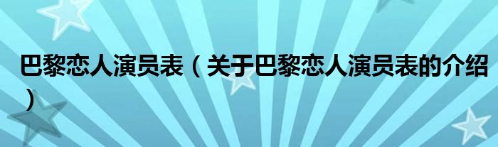 大家好,今天小乐来为大家解答以上的问题。巴黎恋人演员表,关于巴黎恋人演员表的介绍很多人还不知道,现在让我们一起来看看吧!