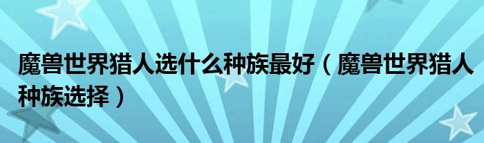 关于魔兽世界猎人选什么种族最好,魔兽世界猎人种族选择这个很多人还不知道,今天菲菲来为大家解答以上的问题,现在让我们一起来看看吧!